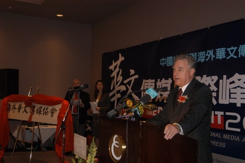加拿大国际贸易部长、太平洋门户策略及冬奥事务部长艾民信在开幕式上表示,随着中国力量的崛起,中国已经在世界上发挥着越来越重要的作用。而华文传媒力量不可小觑。而在温哥华第一次举行这样大型的华文传媒峰会,他表示热烈地欢迎各界华文传媒代表。曾有25年传媒从业经历的卑诗省财政厅长泰莱则表示,传媒的作用十分重要,而随着华裔移民的增多,华文媒体对华裔社区的民生传达都发挥着越来越重要的作用。中国驻温哥华总领事杨强则在发言中表示,中国改革开放近三十年来,取得举世瞩目的成就。而中国所取得的成就离不开海外华文传媒的支持。他希望海外华文传媒再接再厉,进一步加强交流与合作,取长补短,利用自身优势,发出更强有力的声音。